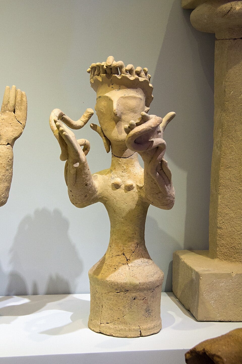 Culinary history can be pretty challenging. Today, we write our recipes on cards, in cookbooks, and the internet, but in ancient societies literacy was rare, and most spent little time writing about food. And if we’re trying to trace a food to Minoan civilization it’s even harder- the pre-literate society had some scripts and hieroglyphs, but they remain undeciphered and unreadable. So most of what we know about ancient food comes from archeological evidence- which is scant- and artistic depictions of food. What we have learned about the Minoan diet comes strictly from analyzing ancient refuse (seeds, bones, and ashes), many discoveries of clay pots, and a few images. Try as I might, I could not find anything in the literature to support the idea that the Minoans made a snake-shaped biscuit. They do appear to have made baked foods, including cakes of some sort. And there are many artistic depictions of snakes (presumed to be religious, including famous statues of “snake goddesses”), but no serpent-shaped cookies. Except there is one, tantalizing clue.